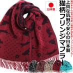 日本製 水玉柄 ネコシルエット マフラー 猫柄 ストール レディース メンズ アニマル 防寒 通勤 通学