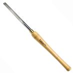 センターワーク(主にスピンドルターニング=角材から丸棒にした棒状の加工)向けの刃物で、荒削り後の形成や仕上げ削りまで利用できます。好みに応じて刃先の角度や形状を変える(フィンガーネールなど)ことで様々なシーンに対応できるようになります。フェイスワーク(ボウルターニング)にも使用できます。