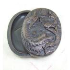 中国硯 澄泥硯 5吋 ふた付き 双龍硯
